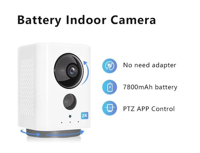 2K Indoor WiFi Security Battery Camera with 7800 MAh PTZ Rotation Home Camera Baby Monitor Pet Camera